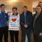 Auf dem Bild: vl. die A-Jugend Spieler Sven Przybilla und Dominic Strempel, R. Buchmüller und H. Fey von WIR-BfD und A. Krauß HSG-Vorstand.