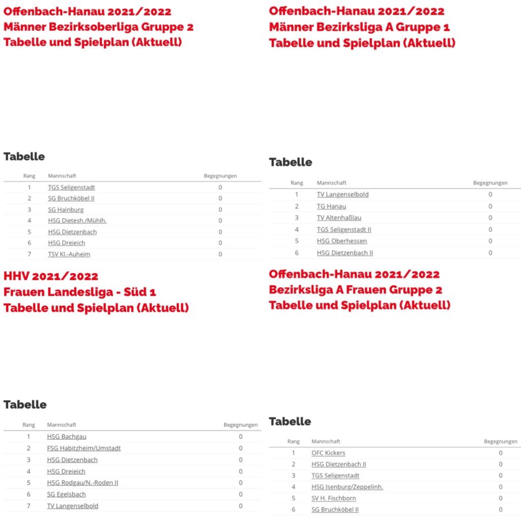 • Tabellen/Spielplan